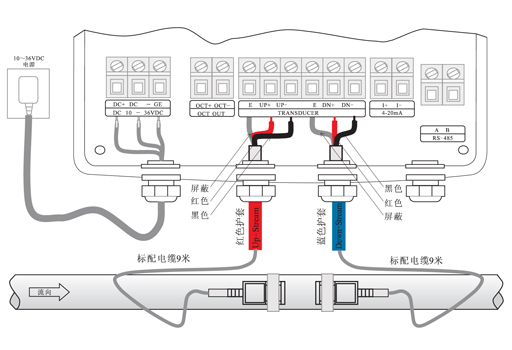 安裝方式:*外夾式 可測管徑范圍:65mm-6000mm 傳感器電纜長度:9m 探頭外殼:鋅合金、PEI,底座:碳鋼 測量介質(zhì)溫度:0℃-+80℃ |